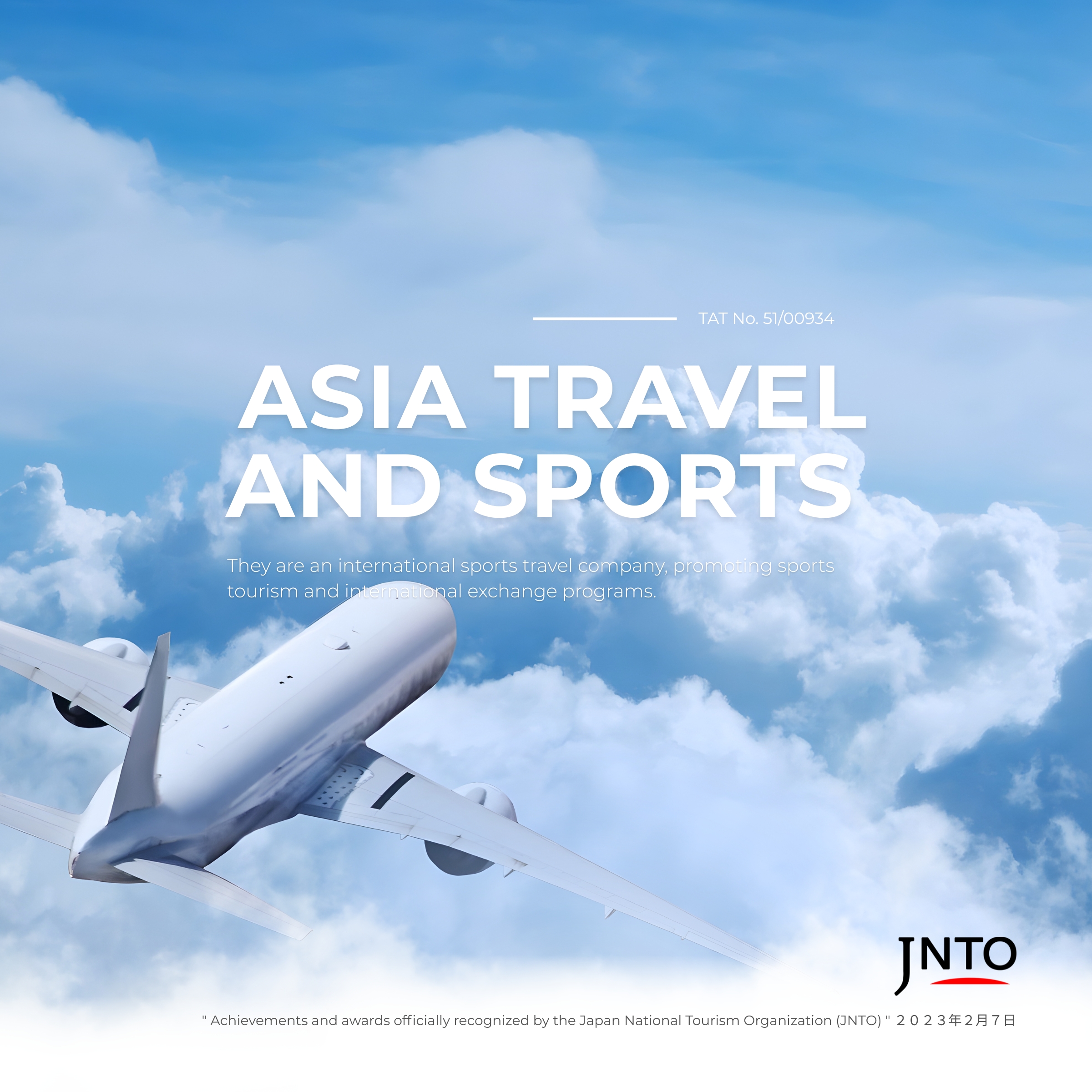 Asia Travel and Sports Co., Ltd. The President of Asia Travel and Sports bring extensive experience from leading sports tourism companies in Japan and has been a pioneer in developing international sports tourism in Thailand since 2012. Building on this strong foundation, the company was officially established as Asia Travel and Sports in 2022. In 2023, the company received an award from the Japan National Tourism Organization (JNTO), affirming our expertise and commitment to delivering services of international standards.